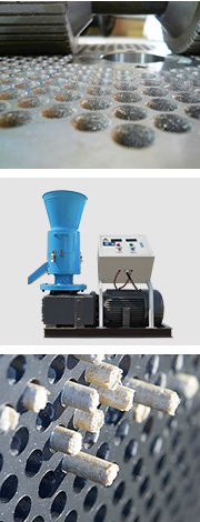 原料通過(guò)高溫,在壓輥和模盤(pán)的擠壓下,通過(guò)模盤(pán)上的孔,優(yōu)質(zhì)成型的顆粒從出料斗滾動(dòng)而出